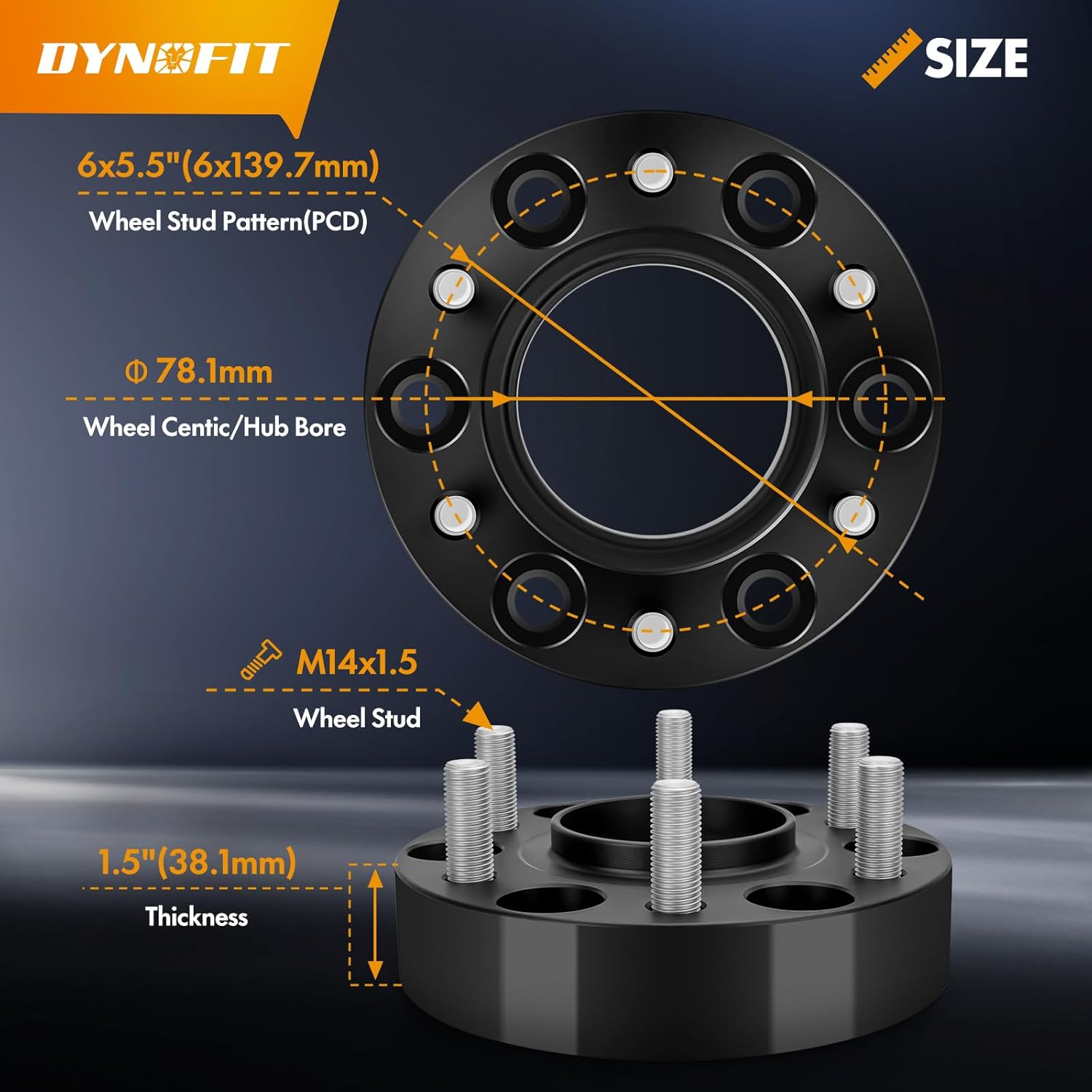 - Optimal Design: Features a 1.5" thickness with a 6×5.5 (6×139.7mm) bolt pattern and a 78.1mm hub bore.